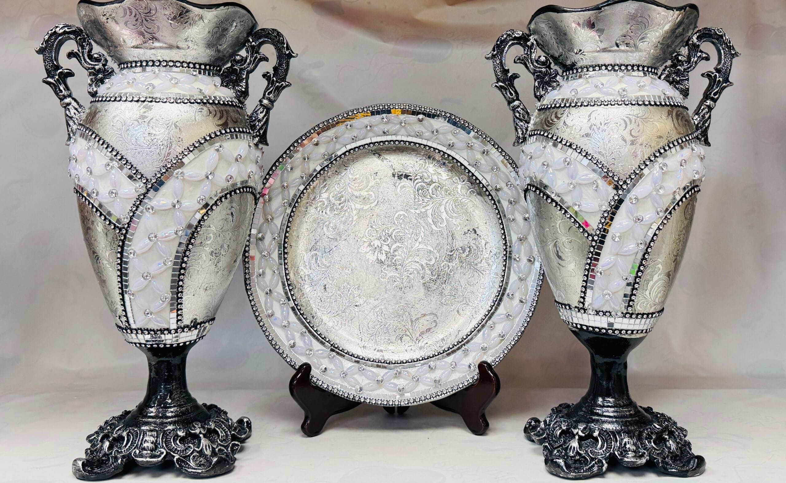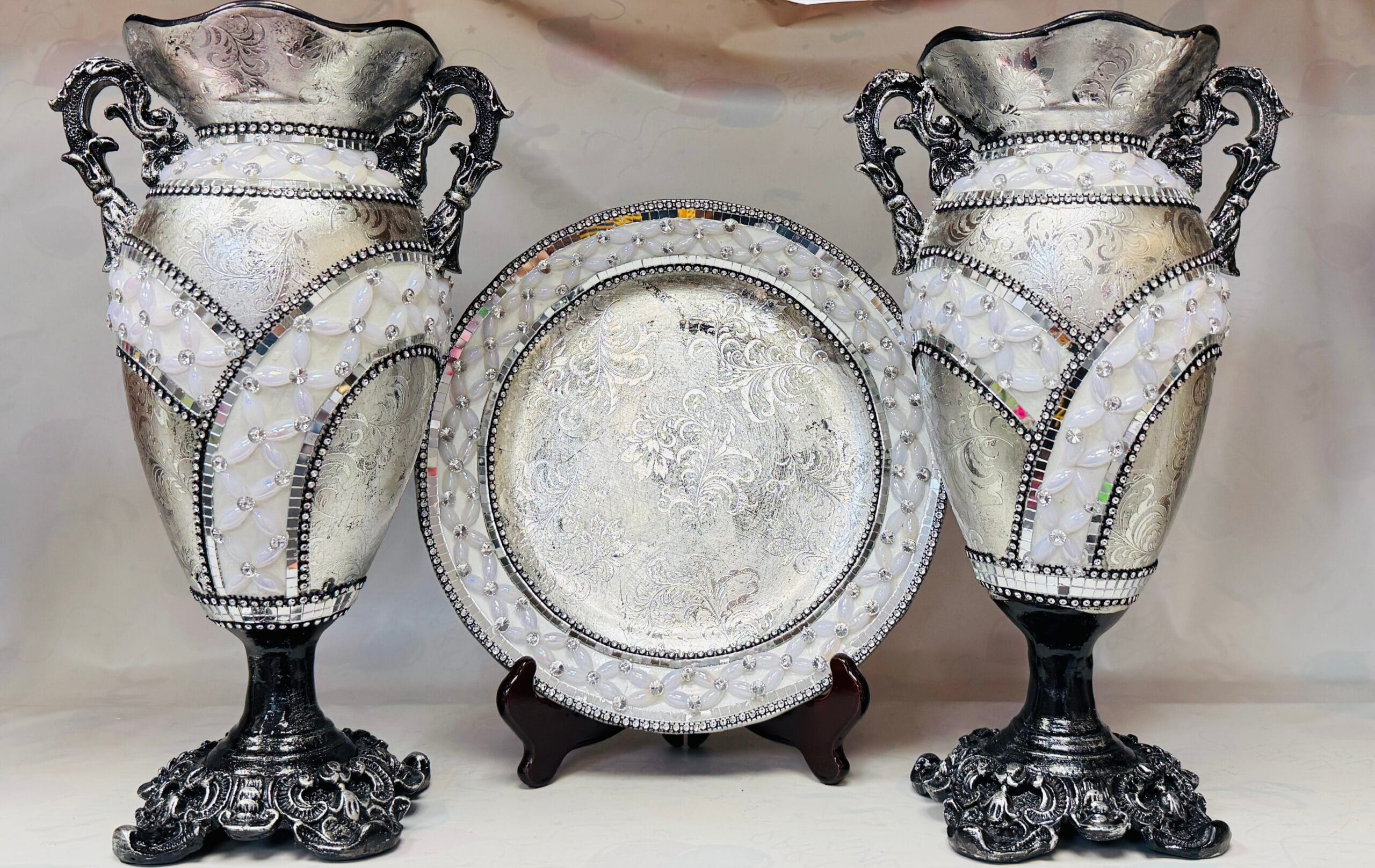 ✔️ Includes 2 decorative vases + 1 display plate