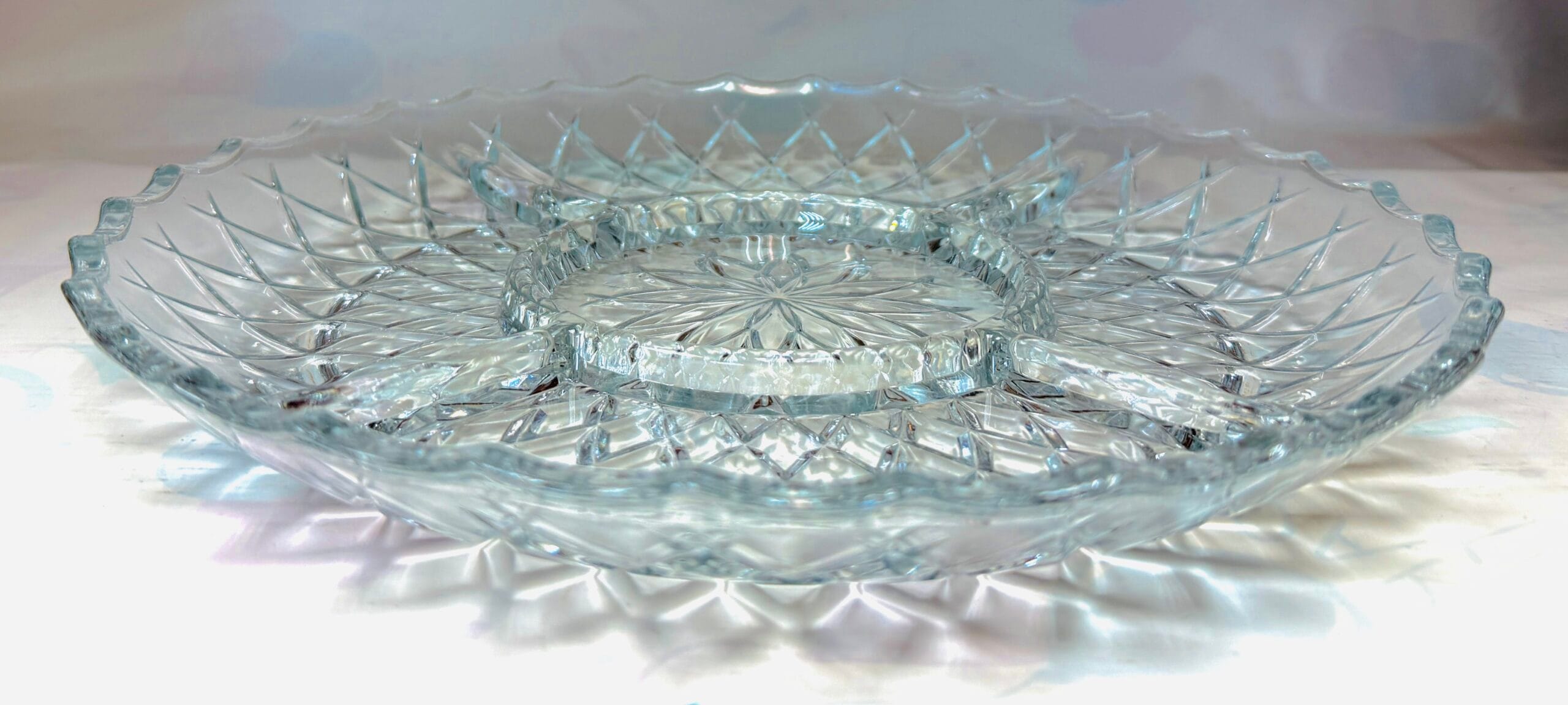 Serve snacks and dry fruits in style! Elegant glass tray with multiple sections, perfect for home, gifting, or festive occasions.