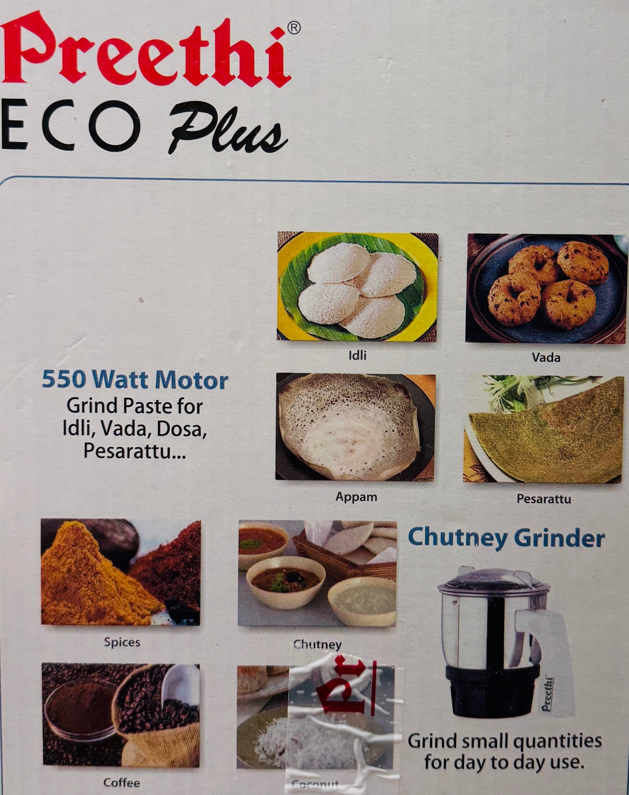🔹 PREETHI ECO PLUS MIXER GRINDER – 550W 🔹