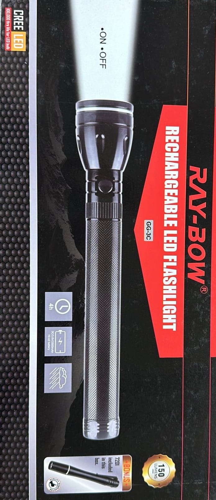 Ray -Bow Rechargeable LED Flashlight (Model GG-3C)